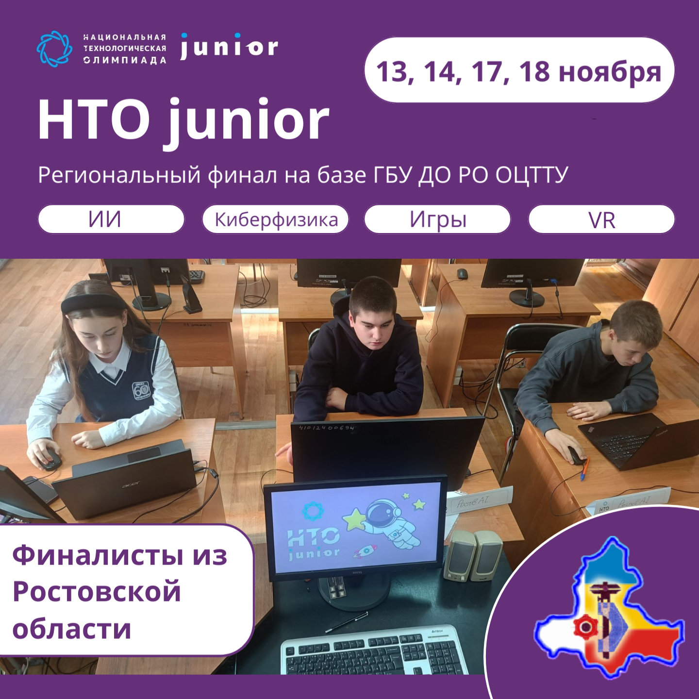 С 13 по 18 ноября 2025г. на базе ГБУ ДО РО «Областной центр технического творчества учащихся» были проведены региональные финалы Национальной технологической олимпиады Junior (НТО Junior) -командные инженерные соревнования...