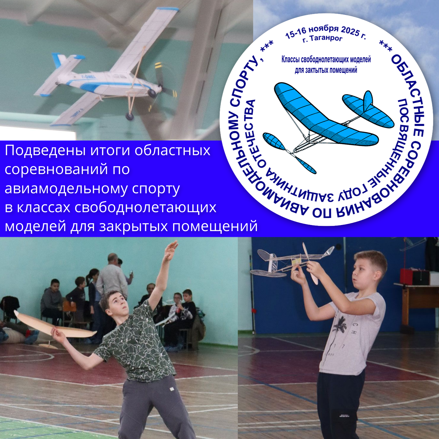 15-16 ноября 2025 года в г. Таганроге на базе спорткомплекса МБОУ СОШ №38 проводились областные соревнования по авиамодельному спорту в классах свободнолетающих моделей для закрытых помещений (осень), посвящённые Году...