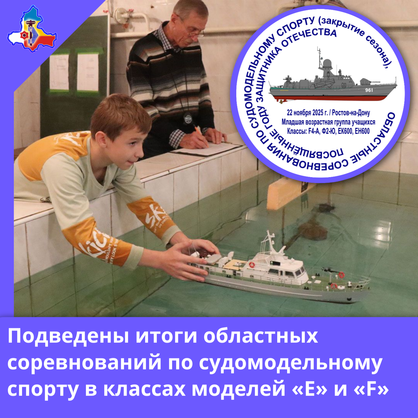 22 ноября 2025 года в г. Ростове-на-Дону на базе ГБУ ДО РО ОЦТТУ проводились областные соревнования по судомодельному спорту в классах моделей «E» и «F» (осень, закрытие сезона, младшая возрастная...
