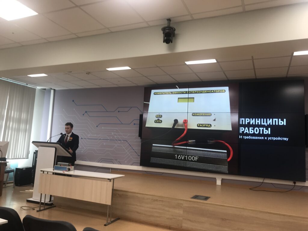 — Федорцов Дмитрий обучающийся ГБУ ДО РО ОЦТТУ в номинации «Энергетика и энергосбережение» представил проект «ИЗМЕРИТЕЛЬ ЁМКОСТИ СУПЕРКОНДЕНСАТОРОВ»;