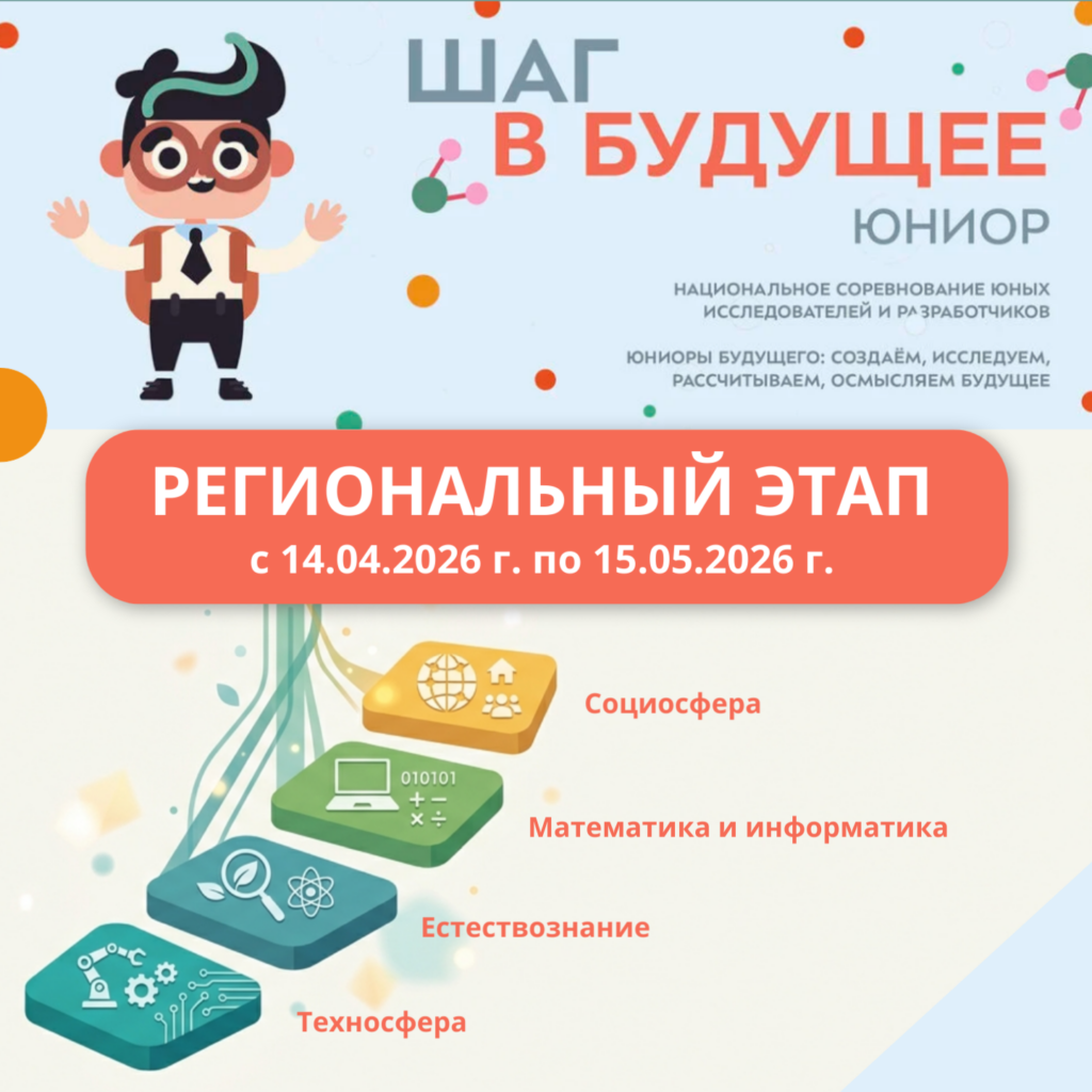Приглашаем Вас принять участие в региональном этапе национального соревнования юных исследователей и разработчиков «Шаг в будущее, ЮНИОР» (далее — Соревнования).